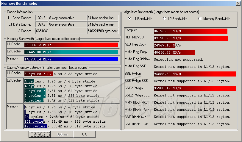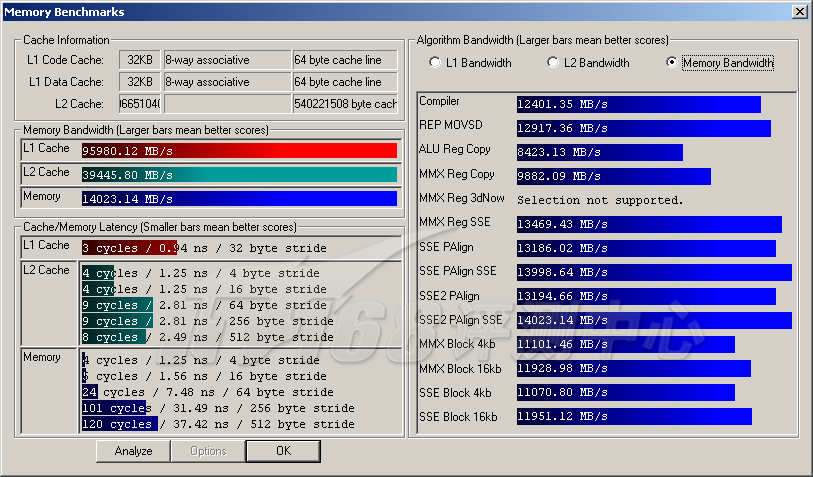 ScienceMark v2.0是一款用于测试系统特别是处理器在科学计算应用中的性能的软件,MemBenchmark是其中针对处理器缓存、系统内存而设计的功能模块,它可以测试系统内存带宽、L1 Cache延迟、L2 Cache延迟和系统内存延迟,另外还可以测试不同指令集的性能差异。