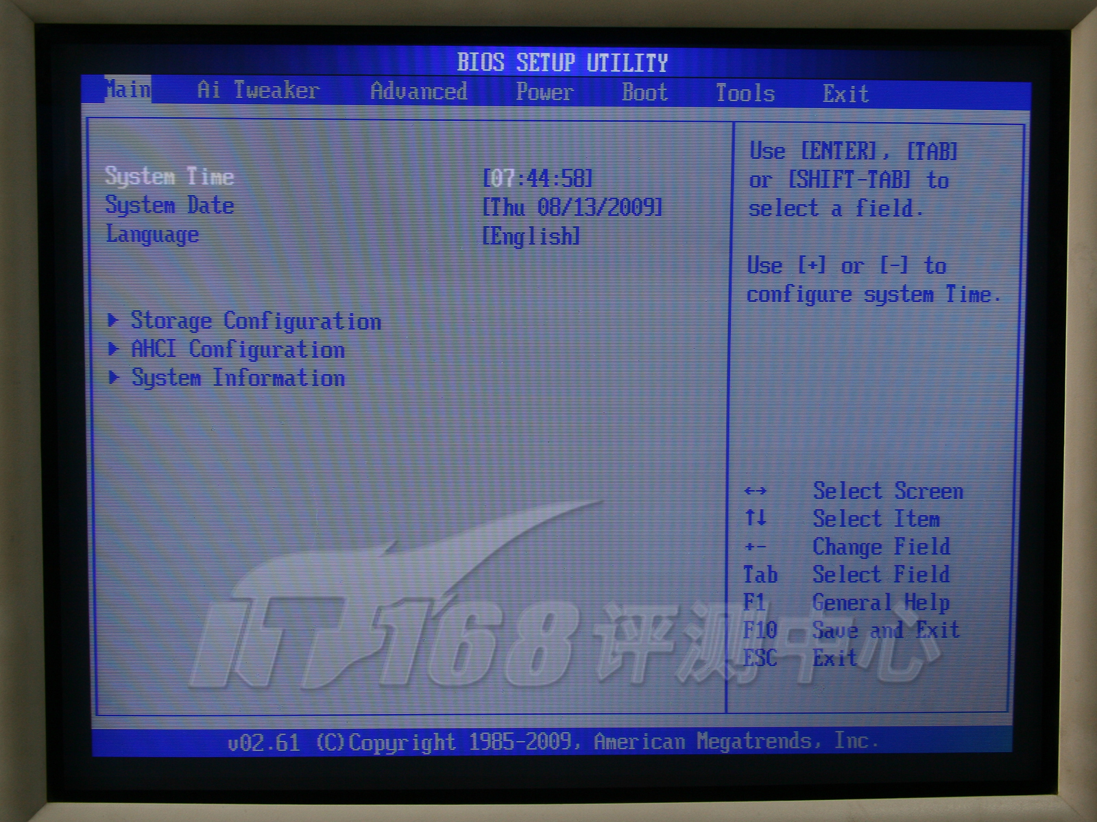 刚刚进入BIOS,我们就看到了这样的界面,主要是时间日期设置(有时还会有软驱设置)。和大多数AMI BIOS一样,这里并没有什么值得关注的信息。