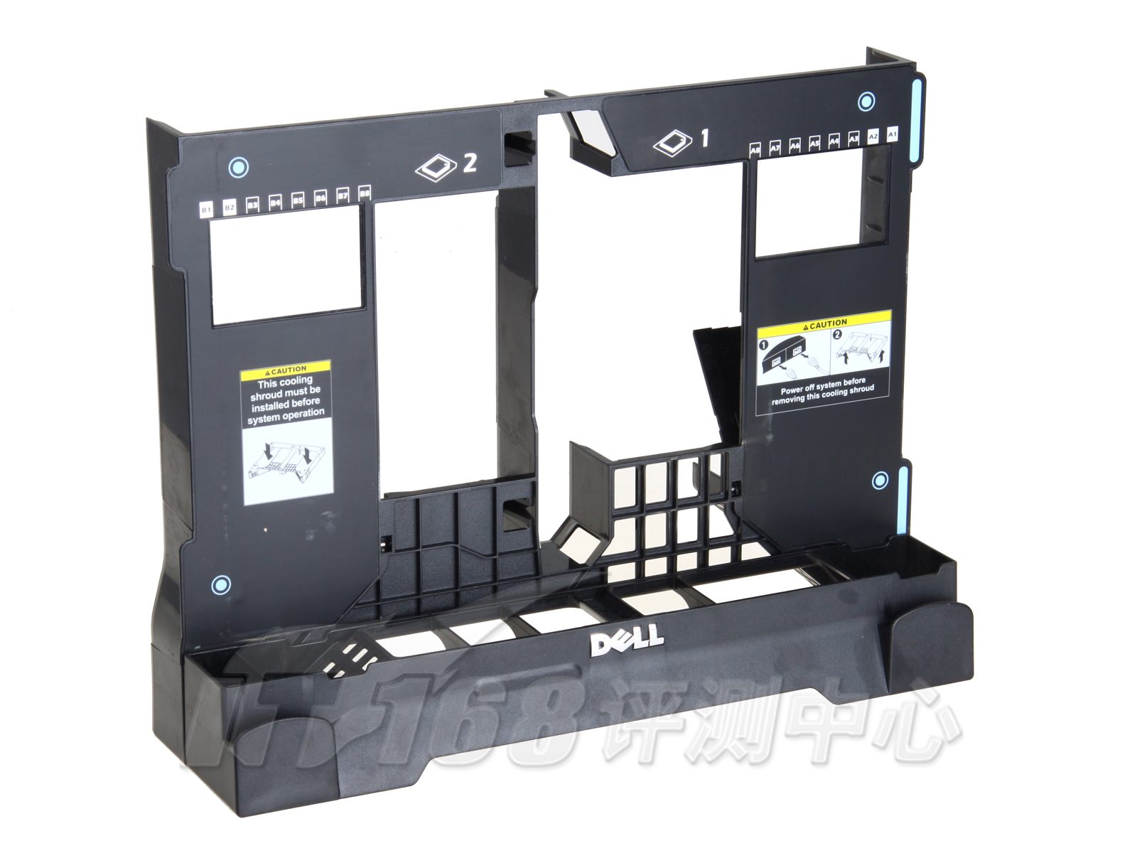 从后面看得很清楚,服务器的双层结构中间还有一个导风罩作为分离,这样使得进入的风量更均匀。