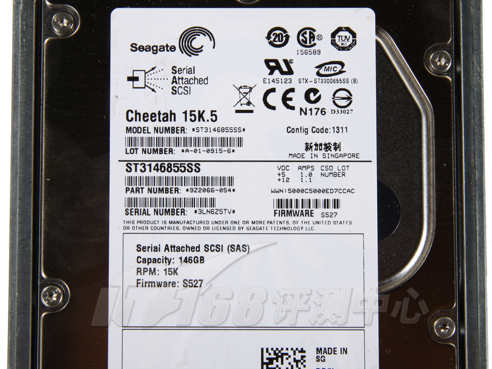 本次测试的R905服务器只预留了5个3.5英寸硬盘位,随机附带了一块希捷Cheetah 15K.5系列SAS硬盘,硬盘的型号为ST3146855SS,容量为146GB,转速为1500rpm,接口速率为3Gbps,缓存为32MB。