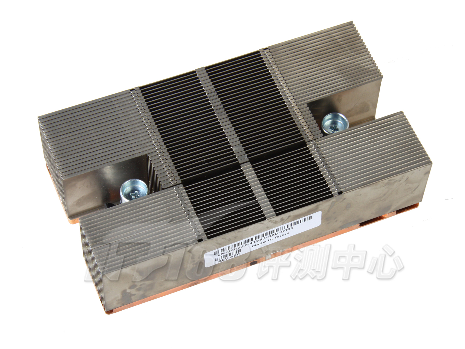 下面开始介绍服务器的主要配件,首先引起我们兴趣的就是这个巨大的散热器。R905处理器散热器采用的是铜铝结合的方式,呈长方体,巨大的表面积主要是为了散热的需要,通过导风罩进入的风可以在散热器中通过的时间长一些,有利于带走更多的热量。这种被动散热的好处就是没有噪音,前提是需要有导风罩的支持,不然温度会非常恐怖的(我们实验过)。