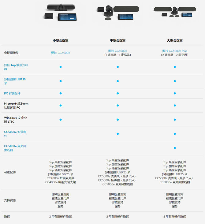 适用于Microsoft Teams和Zoom Rooms的罗技会议室解决方案为客户提供视频会议所需的一切。这些预配置系统提供小型、中型和大型不同配置,涵盖各种不同场景空间,其中包括一台Intel NUC Mini PC、支持RightSense™技术的罗技视频协作产品、带线缆固定装置的PC安装底座以及罗技Tap触摸控制器。这是一个通用会议室解决方案,解决了产品本地化以及服务国内客户的定制需求。轻松部署,只需将小型、中型或大型配置与您的房间相匹配,添加合适的配件即可。