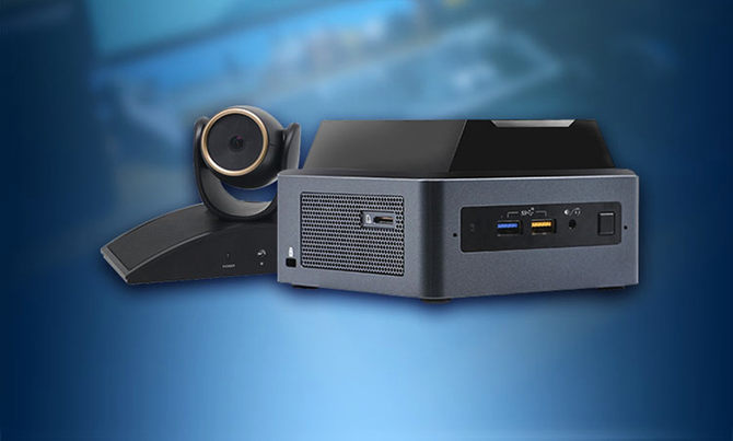 菊风私有云和菊风云视频会议系统均配有英特尔NUC视频终端主机、高清摄像头。