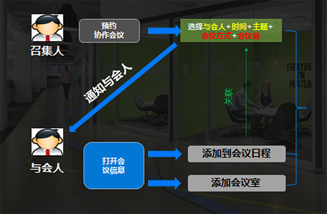 UC-SPACE企业会议空间全场景解决方案是由信和时代负责提供解决方案。UC-SPACE企业会议空间全场景的具体解决方案共分为三部分:会前、会中和会后。