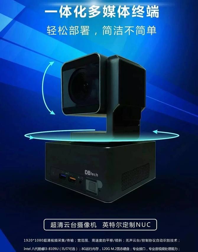 一体化多媒体终端C2是青岛东博科技公司为移动互联网高清视频通讯平台提供的整体解决方案。从硬件配置到软件系统的由东博科技提供,国产化程度高。C2一体化多媒体终端搭载定制高配英特尔NUC主机、超高清云台摄像机和VC200麦克风。