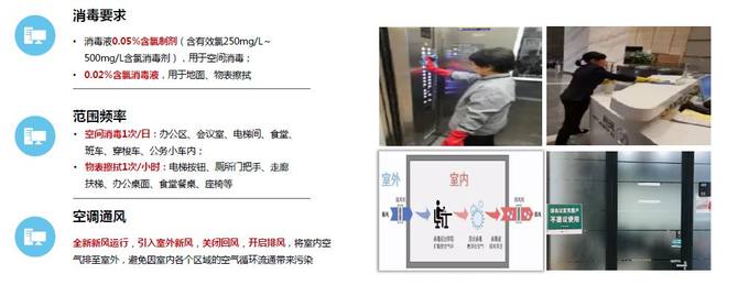 在“不带风险走”方面,做到识别园区中可能传播的风险高危点,如电梯间、人群聚集、封闭空间、餐厅、班车等地,采取严格管控措施,让园区更安全。