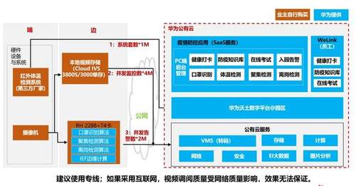 说明:目前市面上大部分红外体温检测系统都满足华为接口要求:restful接口,上报体温、红外成像图片、可见光成像图片等。如果业主需要指定其它品牌红外体温检测系统,建议推动厂家完成与华为云对接后再下单。