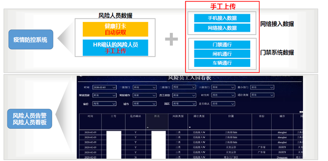 入园告警:多系统数据打通,定期告警入园风险,双重保障。为打造无风险复工环境,通过华为智慧园区解决方案打通多系统数据(风险人员数据、网络接入数据、门禁系统数据等),结合大数据算法,定时进行数据校验,生成风险员工入园看板。一旦出现异常,第一时间按系统预置流程进行处理。