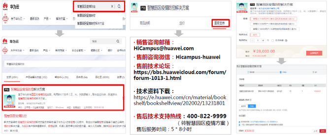 第二步:咨询了解。智慧园区疫情防控->服务支持,通过4种渠道,咨询详细方案与问题。