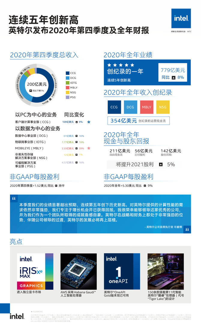 连续五年创新高 | 英特尔发布2020年第四季度及全年财报