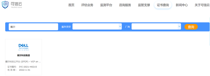 戴尔科技云平台(DTCP)- VCF onVxRail评估及可信云认证证书查询方式: