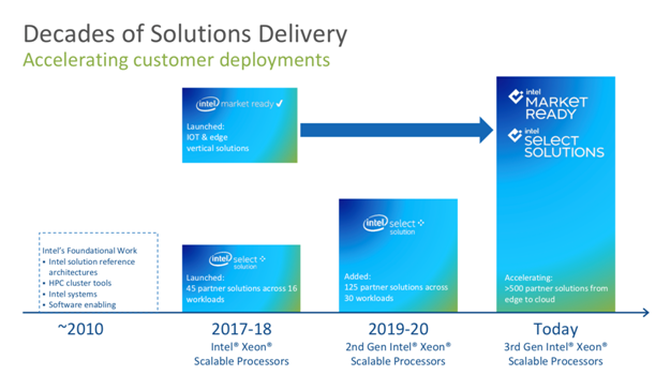 如今,英特尔精选解决方案代表着经过验证的硬件和软件配置,旨在缩短资质认证时间、加快部署,并提高客户对最优应用性能的信心。截至目前,该计划已吸引了超过60个开发和解决方案提供商合作伙伴,由其推出了超过150个解决方案,覆盖人工智能、分析、高性能计算、网络、云和超融合基础设施等以数据为中心的工作负载领域。