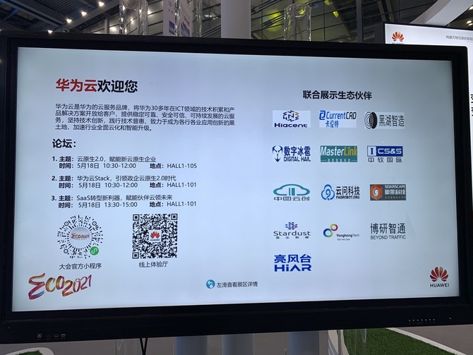 生态馆集中呈现了100+生态伙伴和80+平台支撑能力,诠释了华为如何与伙伴携手共生共进;