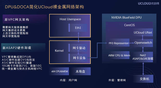 据UCloud资深技术专家马彦青介绍,我们基于DPU&DOCA做的网络卸载。