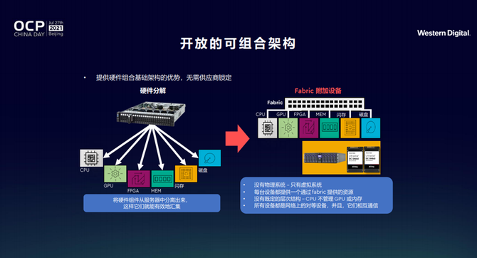 在可组合的分解式架构方面,传统的数据中心基础架构可能导致宝贵的存储资源无法得到充分利用、低效率的数据孤岛现象以及运营成本十分昂贵等问题。西部数据推出一系列新型共享存储平台及服务器,包括OpenFlex Data24 NVMe-oF存储平台,帮助用户过渡到更高效、更优质的分解式架构,从而满足高性能应用和工作负载不断变化的存储需求。