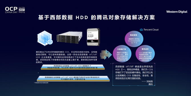 据介绍,结合西部数据企业级硬盘以及面向腾讯应用场景进行优化的高密存储服务器,腾讯推出了无目录层次结构、无数据格式限制,可容纳海量数据的分布式存储服务Tencent COS,实现了存储桶空间无容量上限扩展,可以满足多种场景需求。