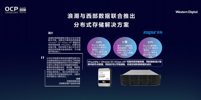 星辰天合、浪潮、西部数据三方合作,推出了针对分布式存储优化的解决方案。该方案包括西部数据18TB UItrastar DC HC550 CMR HDD,不仅实现了快速部署、便捷运维,还有助于减少业务异常情况带来的损失,大幅提升业务收益。