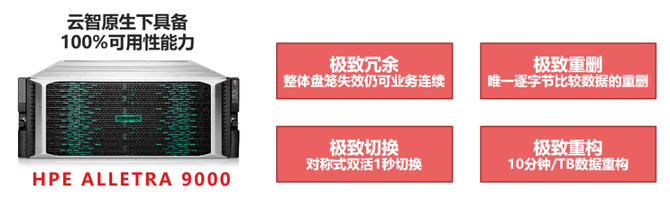 核心关键业务应用是传统集中式存储的主打市场,主要承载的应用包括大型核心数据库、大型虚拟化/容器集群以及大规模应用整合。最关键的衡量指标就是一个字:稳!也就是说,在发生意外的情况下,系统仍然要“稳定”的为业务应用提供支持,业务不能断,甚至性能也不受影响。我们经常说的关键业务应用需要达到6个9的可用性,而Alletra是为100%的可用性而设计。