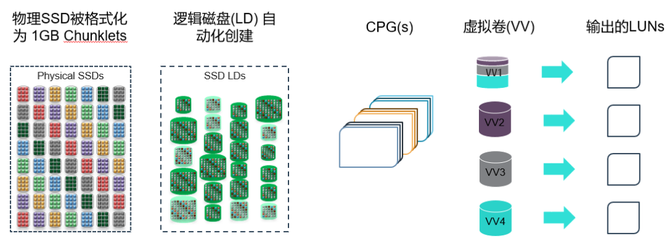 其实Alletra的这一技术源自3PAR,3PAR是业界最早做块虚拟化的厂商,于2010年被惠普收购,随着产品的发展与更迭,这一技术特性也被移植到了Alletra系统上。事实上,这种底层的虚拟化技术已经被业界广泛认可,成为今天存储系统的主流技术,大多数厂商或多或少都采用了类似的技术对底层资源实现池化,但Alletra的底层虚拟化仍然是做的最为彻底的。