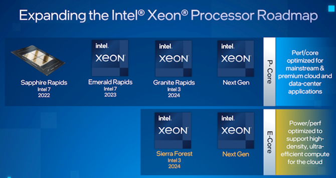 除了Sapphire Rapids,英特尔还同时公开了路线图上其他产品的相关信息。继Sapphire Rapids之后,与平台兼容且同样基于Intel 7制程工艺的Emerald Rapids将于2023年问世,按照英特尔一贯的命名传统,Emerald Rapids有可能是第五代至强产品。