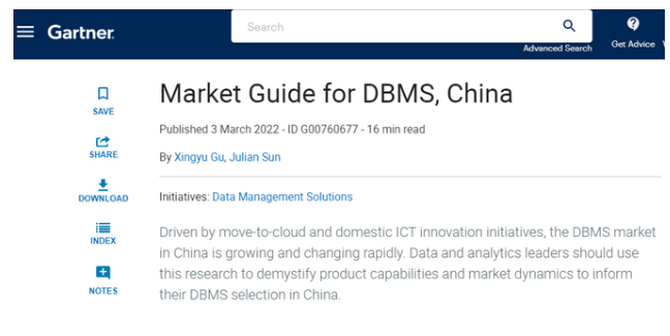 Gartner:新华三入围中国数据库代表性厂商