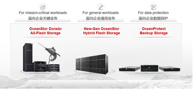 华为面向企业的不同业务场景,持续完善全场景闪存产品序列,包括SAN&NAS一体化的OceanStor Dorado全闪存存储,新一代OceanStor混合闪存,支持闪存的OceanProtect专用备份存储,以及业界唯一的“主存+备份”完整防勒索解决方案。
