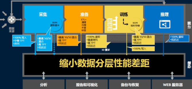 如今,各行各业与人工智能的深度融合落地正在不断进行,如精准营销、智能风控、智能安防、智能家居、在线教育、远程医疗、自动驾驶、智能物流等。这些基于人工智能对数据力量充分利用的过程中,不论是数据采集、准备,还是数据训练和推理,各个阶段读写的数据类型不同,工作负载不同,对存储的性能提出了苛刻的要求。