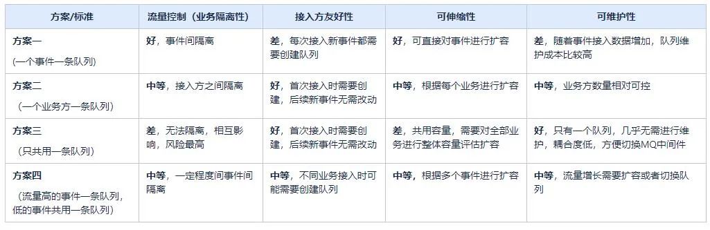 方案二:同一接入方的事件使用同一队列,不同接入方使用不同队列(目前消息中心的方案)