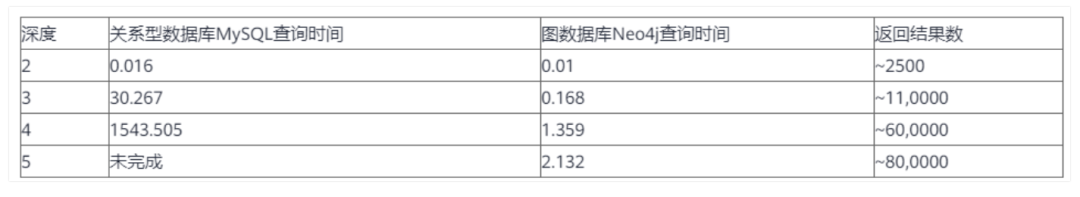 2. 图数据库的查询与分析效率更高,性能更优:比如在社交关系型数据中,随着社交关系的深度(即朋友的朋友)越深,关系型数据库与图数据库的查询性能相差越大。