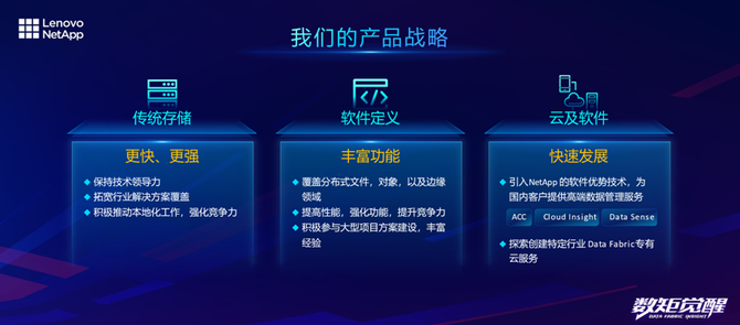 据林佑声介绍,围绕着Data Fabric数据管理理念,联想凌拓部署了完整产品线,并已充分覆盖到每一个市场细分领域,全方位为我们客户提供高质量的产品解决方案及服务。