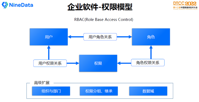 安全核心是权限模型设计,比较标准的是RBAC(Role Base Access Control),我们可以参考这套模型演进。核心是理解用户、权限、角色三个重要的对象。按照RBAC设计问题不会太大,有可能会有扩展的东西。比如面向公司的用户,会有组织和部门的关系。权限会扩展出权限分组,角色会有继承等。另外一个是数据域权限,同样的权限与角色,但是能访问的是不同范围的数据,就会有数据域等高级定义。