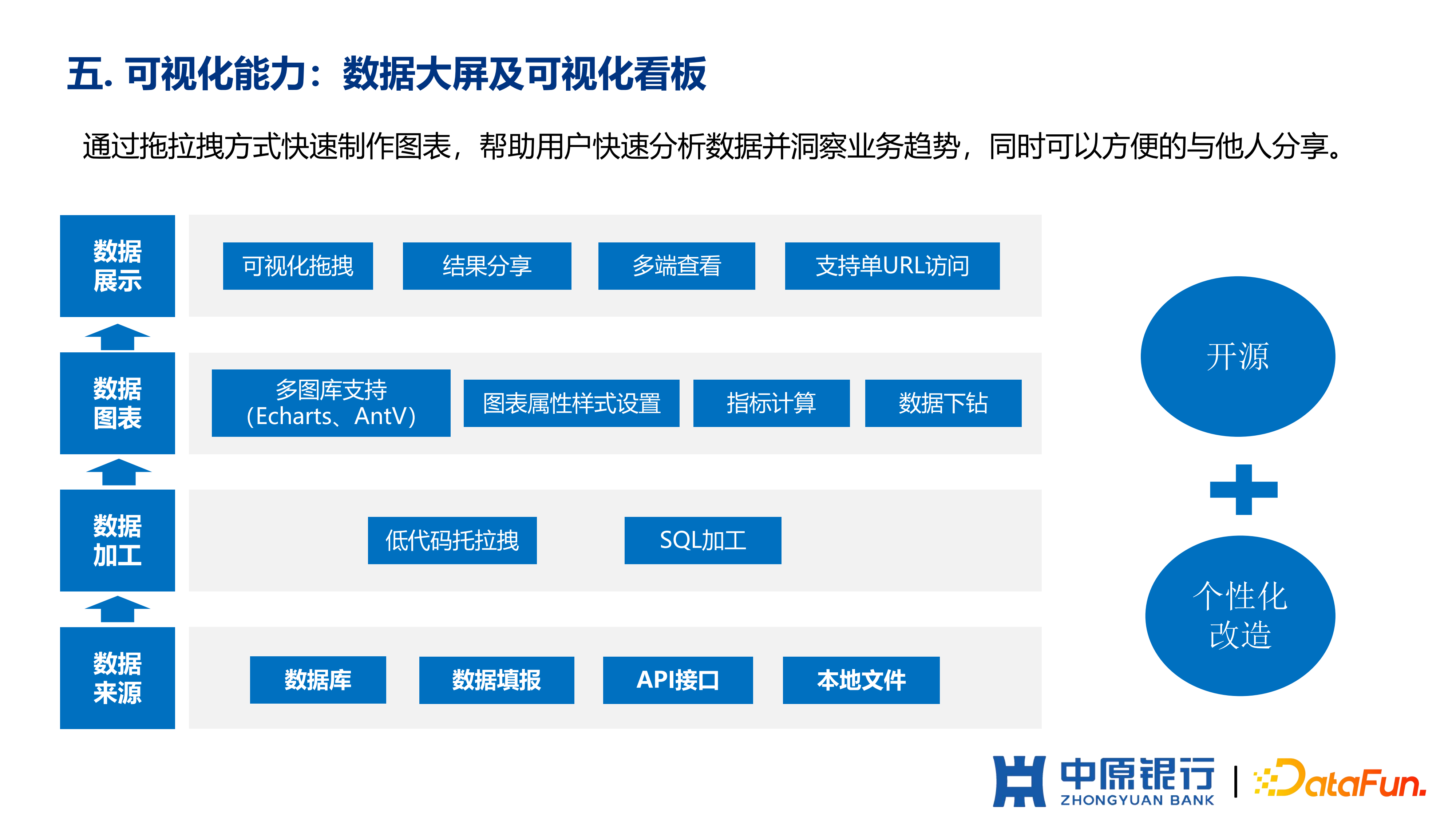 从 2019 年开始,为了实现之前提到的业务目标,中原银行开始建设整个的敏捷 BI 体系。