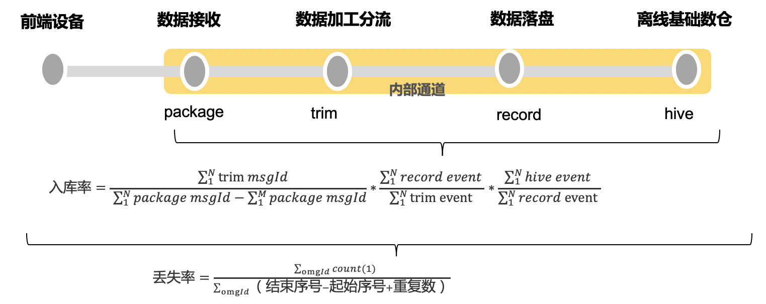 链路检测有两个核心指标:丢失率和入库率,分别用来度量端上sdk、内部通道的采集质量。