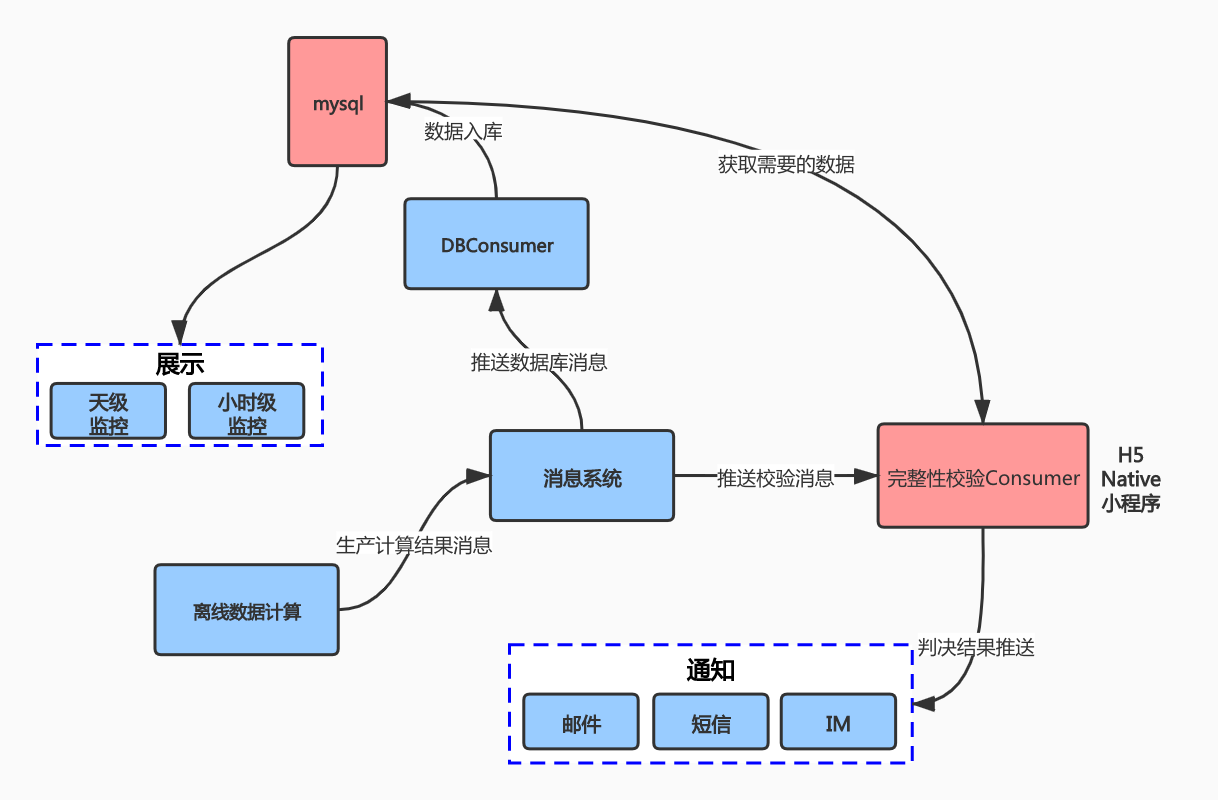 如何有效的评估并提供给下游一份可用的数据?这就是贯穿全流程的链路检测服务需要解决的问题,数据链路检测模块主要承担链路的接收率、重复率、丢包率的度量及预警等职责。