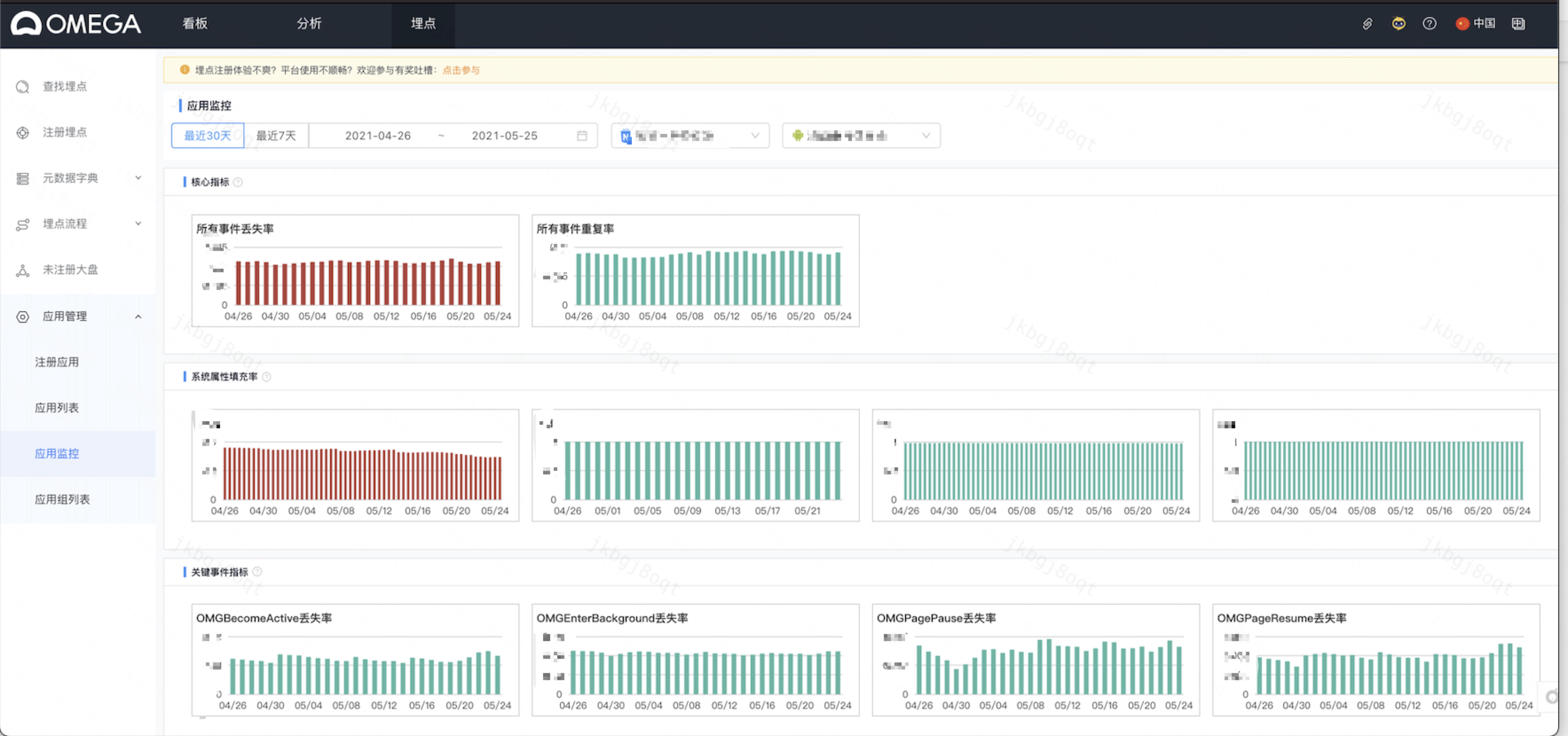 丢失率是逻辑上度量端上sdk采集质量,丢失率分子为实际在接入层收集到请求数,丢失率的分母是通过计数器实现预期的请求数,丢失率通过对埋点请求接收情况量化进而度量端上sdk的采集质量。