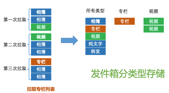 阶段一:增量拉,更新内容同步存入收件箱