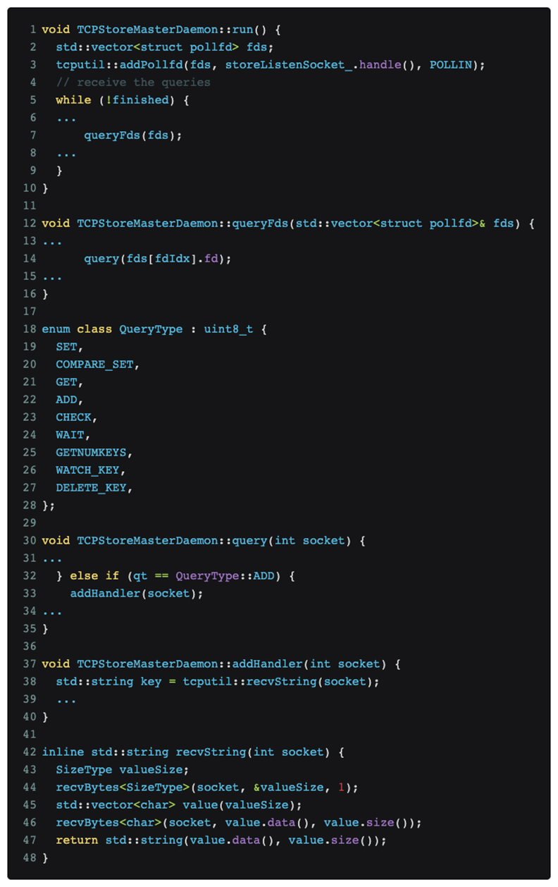 如上图所示,pytorch分布式训练在master端口持续监听消息。