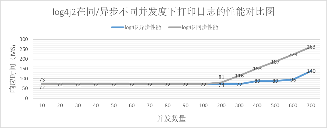在小并发数量的时候,log4j2的性能是一致的,在并发数量增大到一定数量时,异步打印的性能明显优于同步打印。