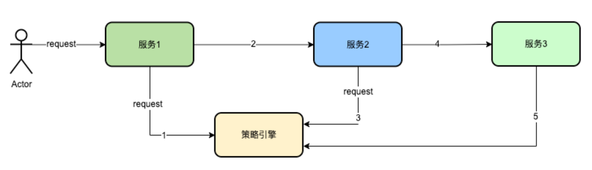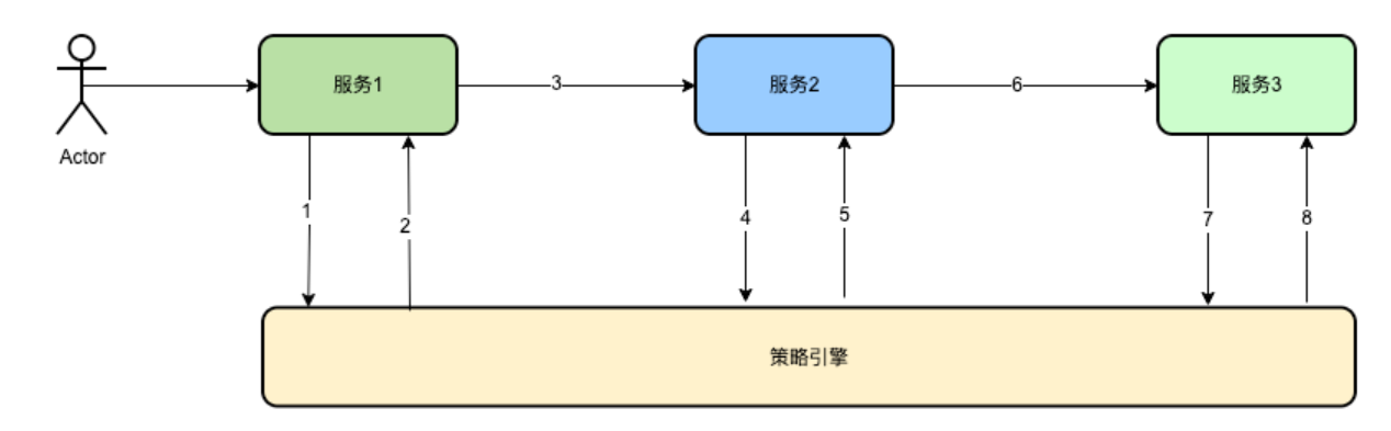 如上图所示,服务1请求策略引擎后,在TraecContext内增加标识符,表示该请求Trace已经记录过日志。在后续节点即服务2,服务3再次请求策略引擎时,则无需再重复记录。这样做可以减少很多的日志记录。