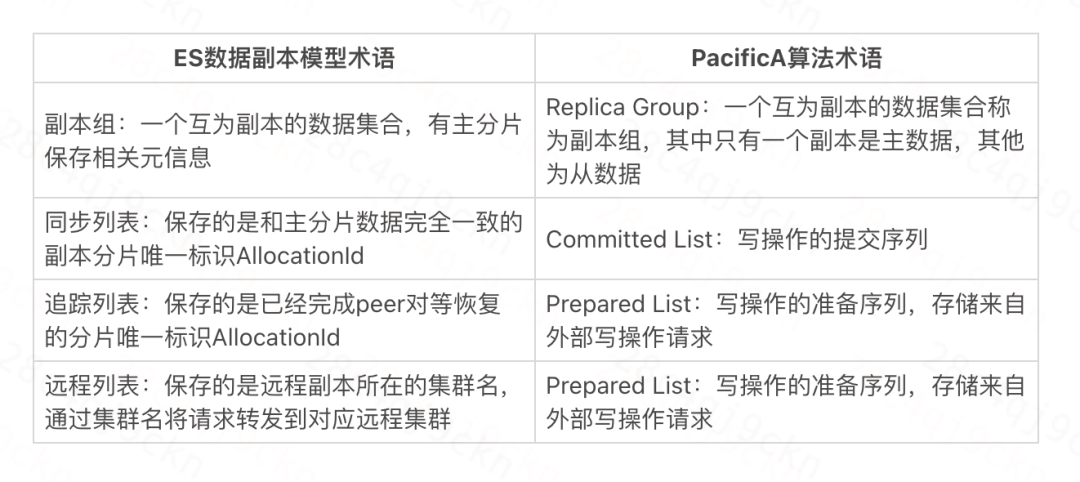 以下是该算法的部分核心术语和ES数据副本模型的对应关系: