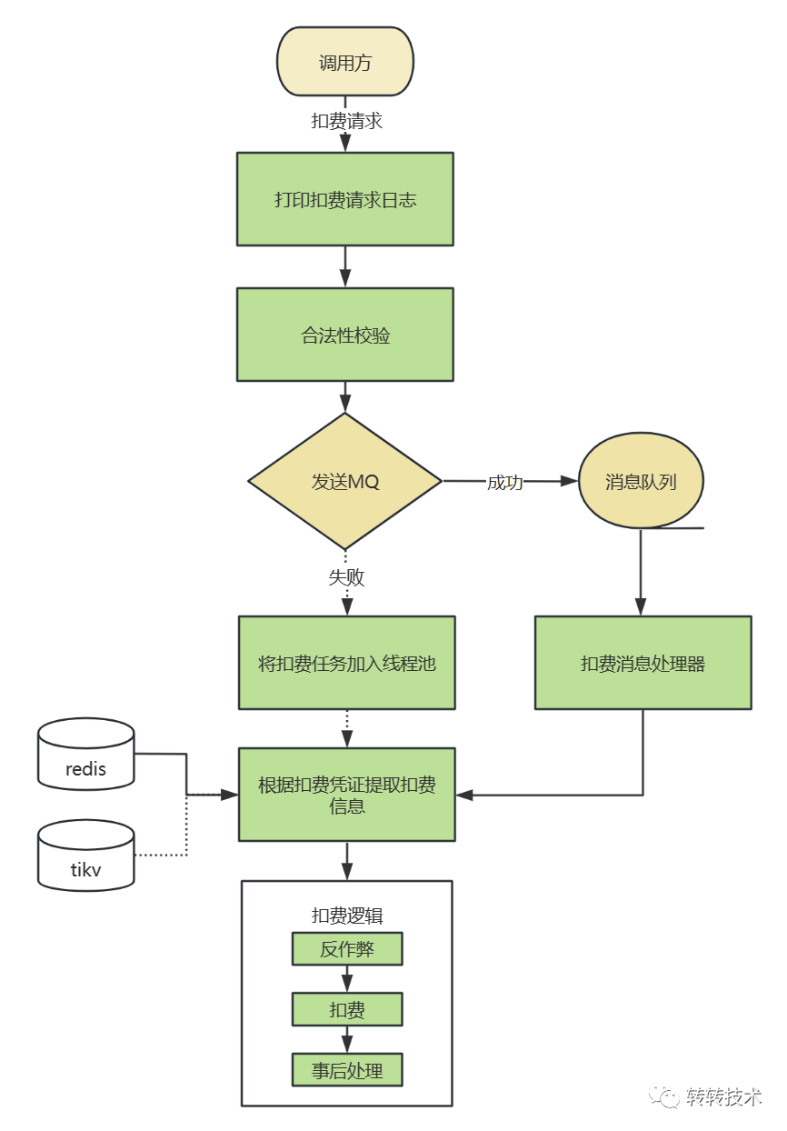 在获取扣费凭证时,扣费信息是存储在 Redis 中的。当 Redis 不可用时,借助了 TiKV 来确保系统的持续可用性。