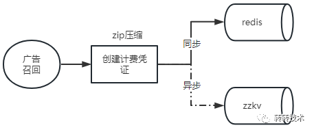 召回阶段获取扣费凭证时 Redis 和 TiKV 同时存储扣费信息。主存储同步写入 Redis,调用方等待结果;从存储异步写入 TiKV,在不影响系统性能的前提下,使用TiKV作为备份。