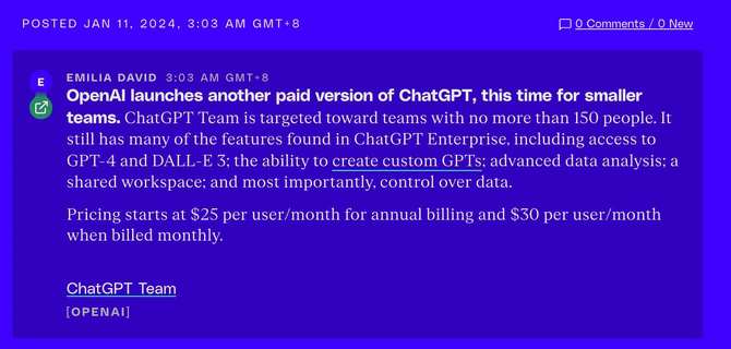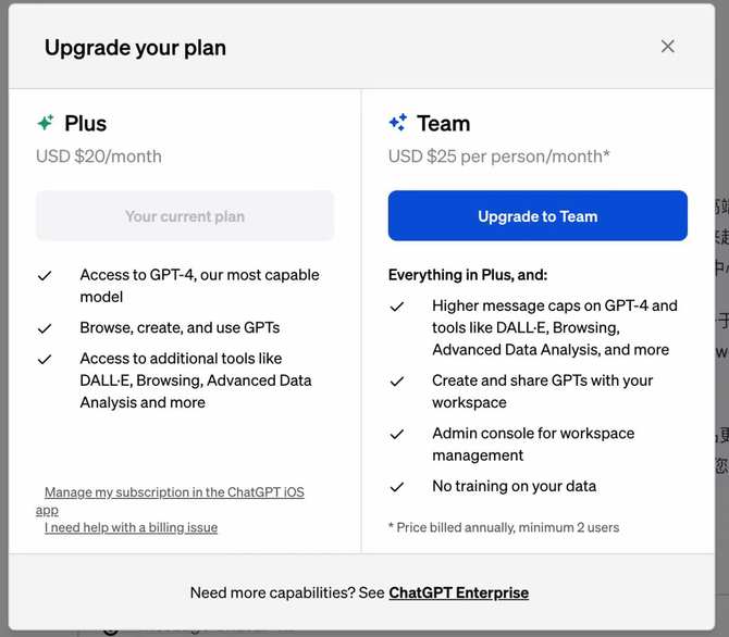 ChatGPT Team订阅者可以使用OpenAI的GPT-4语言模型、能够理解图像的GPT-4 With Vision以及用于从文本创建图像的流行向导DALL-E 3入口。