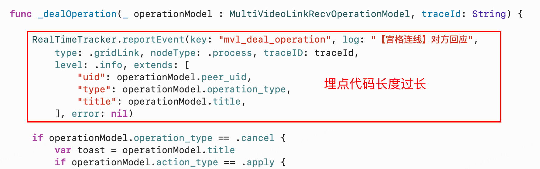 上报代码过于繁杂:由于需要8个参数,需要多行代码才能完成一次上报,在业务代码中插入这一块又一块的和业务无关的代码,会严重降低可读性和可维护性;