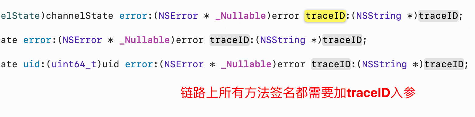 在最初版中,我们将所有的非公共参数都写到了函数入参中,并在业务层透传了trace_id。如图所示: