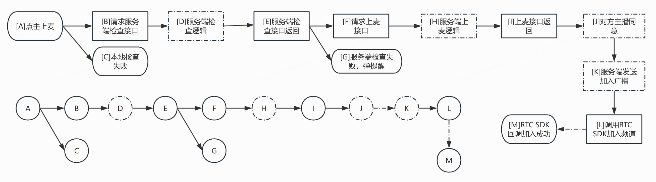 图中使用了虚实线来区分跨端或者跨线程的动作,其必要性可参见下文第(2)点。