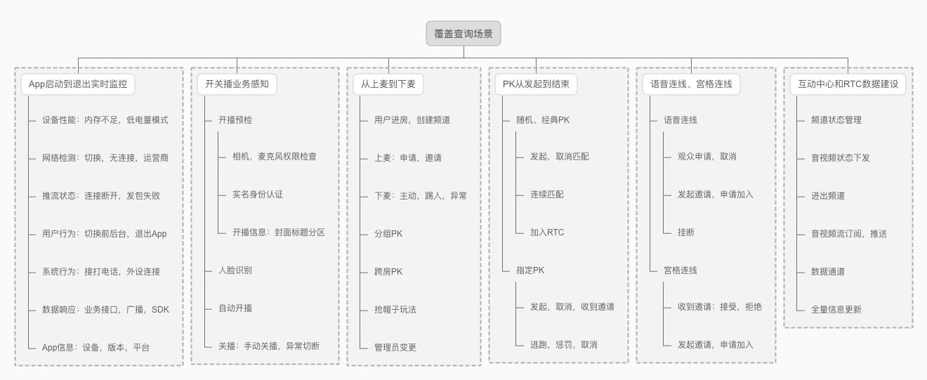 从App启动到退出,从开播到关播,从上麦到下麦,从PK发起到结束等关键业务场景。
