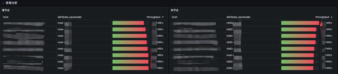 同时基于单个计算节点维度的性能统计,我们可以快速发现同批次机型下的快慢节点,进行异常分析
