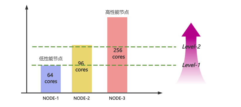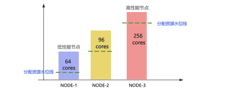 在优化后,在资源利用高峰时,高性能节点将会优先被利用,而低性能节点则会处于较低的资源分配水位线上。