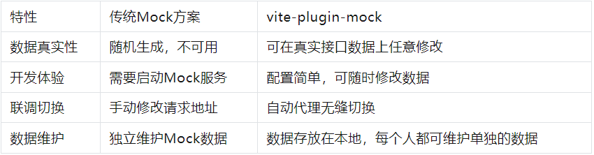 相比于传统的 mock 方案,vite-plugin-mock在开发体验、数据维护上有更好的开发体验。